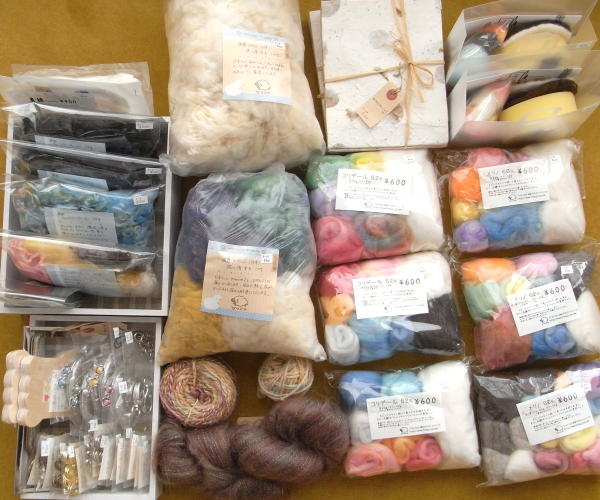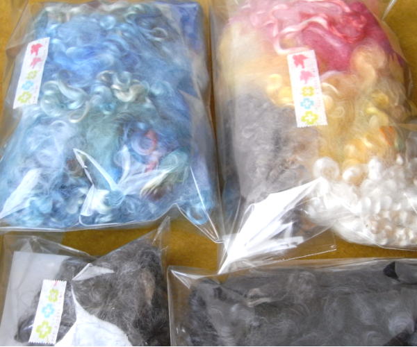 その中でおススメなのは、後生大事に仕舞いこんでいた「国産ホゲット(仔羊)の洗毛」。未染色1袋と、染めたものも入っている混合を1袋、ご用意しました。