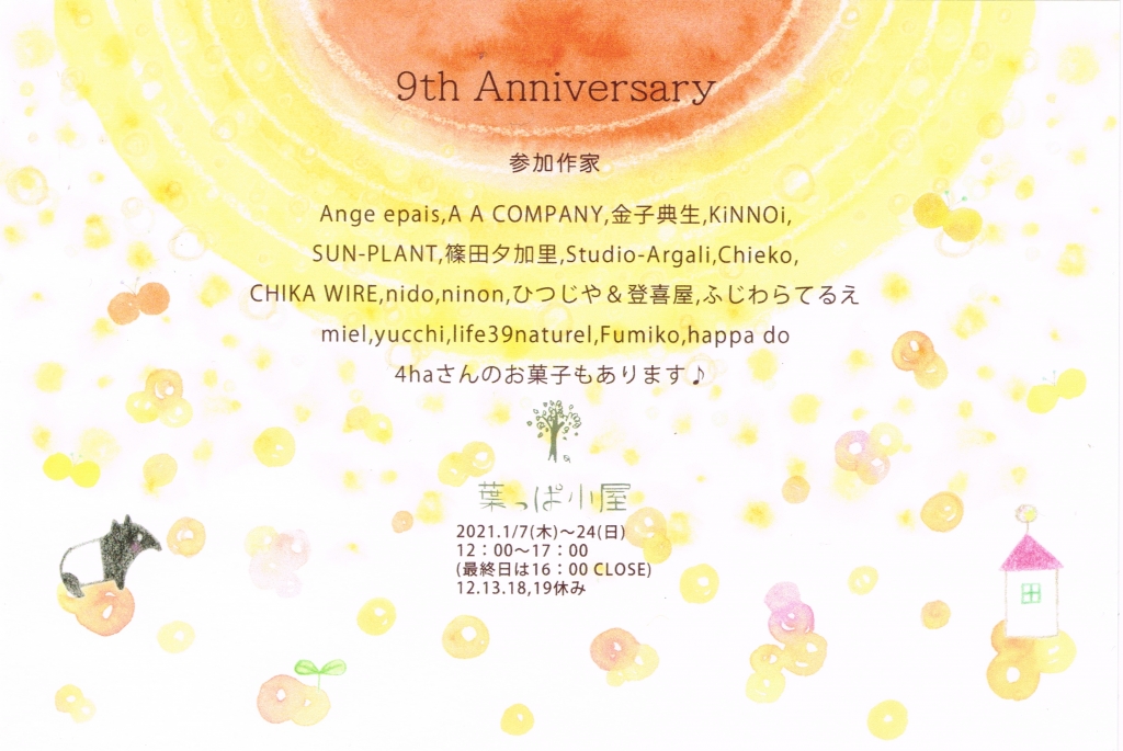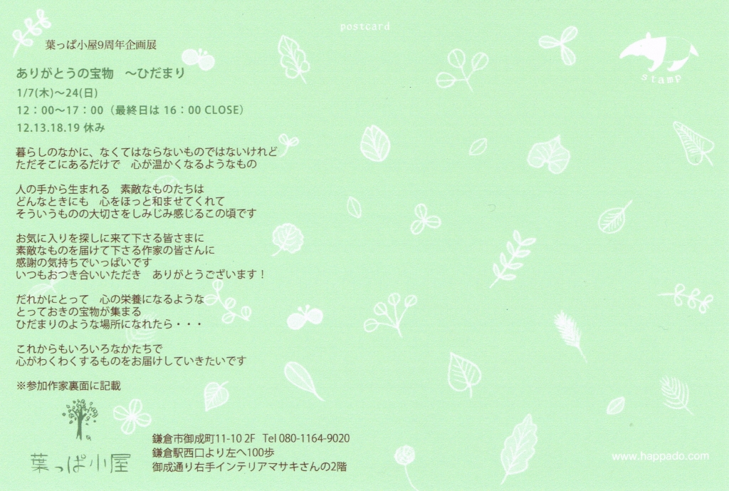 鎌倉御成通にあります葉っぱ小屋さんの9周年企画展「ありがとうの宝物~ひだまり」に参加しております。