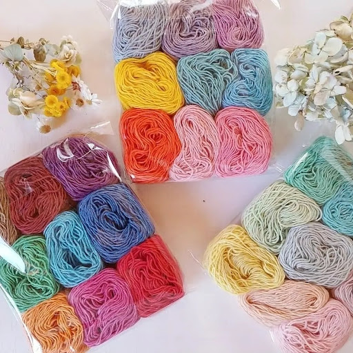ひつじやは手染め毛糸、手染め羊毛、雑貨類などなど。