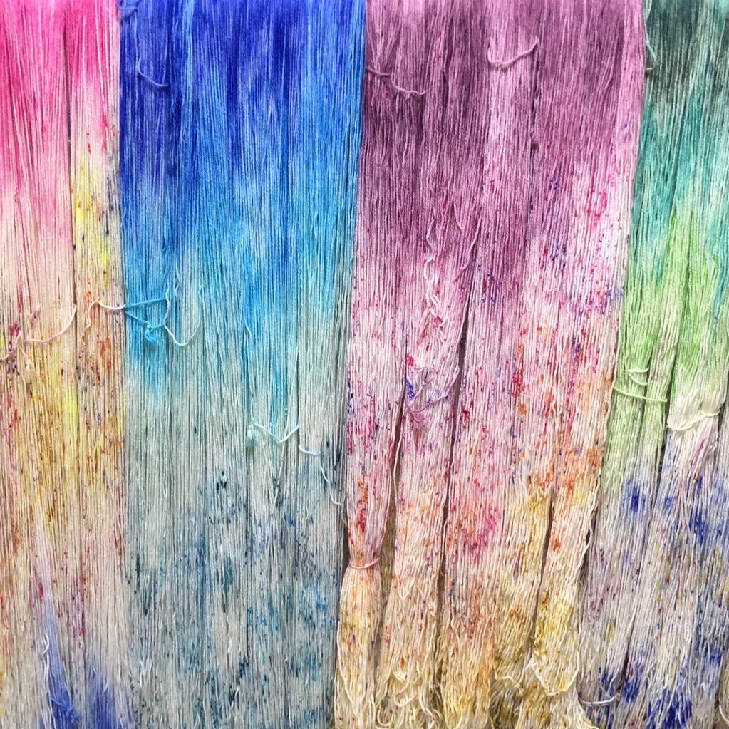 ひつじやも素材博以降、染めて染めて染めて染めておりましたので、カラフルましましの山盛りでお待ちしております。