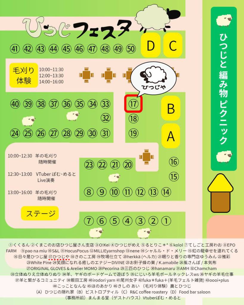 上記は晴天時配置。ひつじやは【17】にOPENしている予定です。